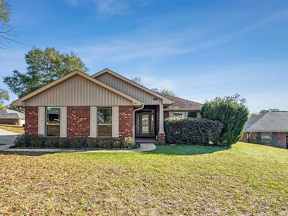 Welcome to this charming residence nestled in the desirable Old Bethel Estate. Sunlight pours through the expansive layout, highlighting tasteful architectural touches throughout. The open floor plan allows for seamless flow between the kitchen, dining, and living areas. The luxurious primary suite is a peaceful haven, offering an oversized walk-in closet and a spa-like en-suite bath with a dual-sink vanity, fiberglass shower, and deep soaking tub. The stylish kitchen features rich cabinetry, stainless steel appliances, and freshly installed quartz counter tops, and recently installed laminate plank flooring. Step out onto the inviting screened porchan ideal spot for evening relaxation. This home features a fenced back yard, perfect for outdoor entertaining and privacy. Additional features include dramatic ceilings, contemporary lighting fixtures, custom window treatments, and thoughtfully crafted landscaping with decorative brick pavers, a full gutter setup, and a well-planned irrigation system. The new Crestview bypass just a minute south will significantly reduce travel time to Niceville and Fort Walton Beach, cutting out the congestion of in-town traffic. With quicker, more direct access, daily commutes or weekend beach trips just got a whole lot easier.