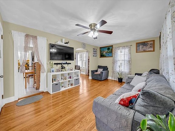 Pride of Ownership Shines Throughout. Updated stairs/deck lead to the welcoming front porch, which invites you to sit back, relax, and soak in the peaceful charm of the neighborhood. Step inside to discover a spacious living room, a bright and cheerful eat-in kitchen, and a true dining room. Gorgeous hardwood floors are found in the living & dining rooms and continue upstairs. The second floor includes three comfortable bedrooms and an updated full bath. Need extra space? The large unfinished attic offers endless possibilities—whether for storage, hobbies, or future expansion. Laundry is located in the open basement, and a newly added second full bathroom offers flexibility and function. Outside, the fully fenced yard is cleverly divided into two private areas—perfect for gardening, pets, play, or simply enjoying the outdoors your way. A neat and tidy garage sits just beyond the covered patio, creating a seamless space for entertaining, grilling, or unwinding! Municipal electric!