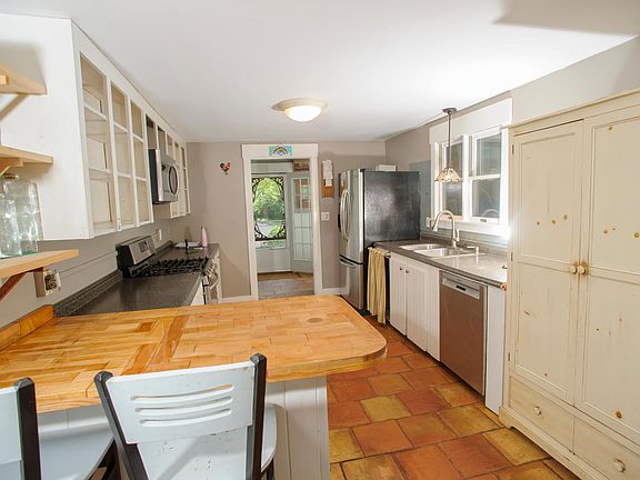 Nicely set back from the road, you'll find this charming home that will surprise you with its unique features and spacious entertaining areas. With its quaint front entry into the mudroom and kitchen, the space opens up to a large living room with cathedral ceilings and wood stove.Off of the living room is the dining room, with sliding glass doors to the back deck.One bedroom and a full bathroom finish off the first floor living space.On the second floor, you'll find the roomy primary bedroom with cathedral ceilings and two guest bedrooms with built-ins, loft space and cathedral ceilings.Potential abounds in the walkout basement area, with exterior access through sliding glass doors, you'll find a large unfinished space, laundry area with washer and dryer, full bathroom and a utility/storage room.The yard has lots to offer with a fire pit area, raised garden beds and a large shed to house all your outdoor items. *5 Bedroom Septic System installed in 2022.201 Spring Street is not in the watershed so an enhanced system upgrade will not be required at the time of property transfer.