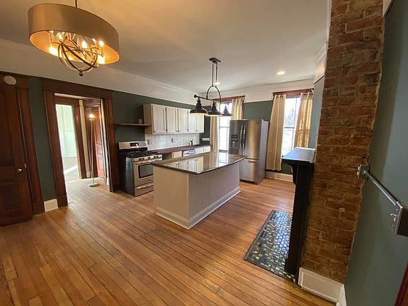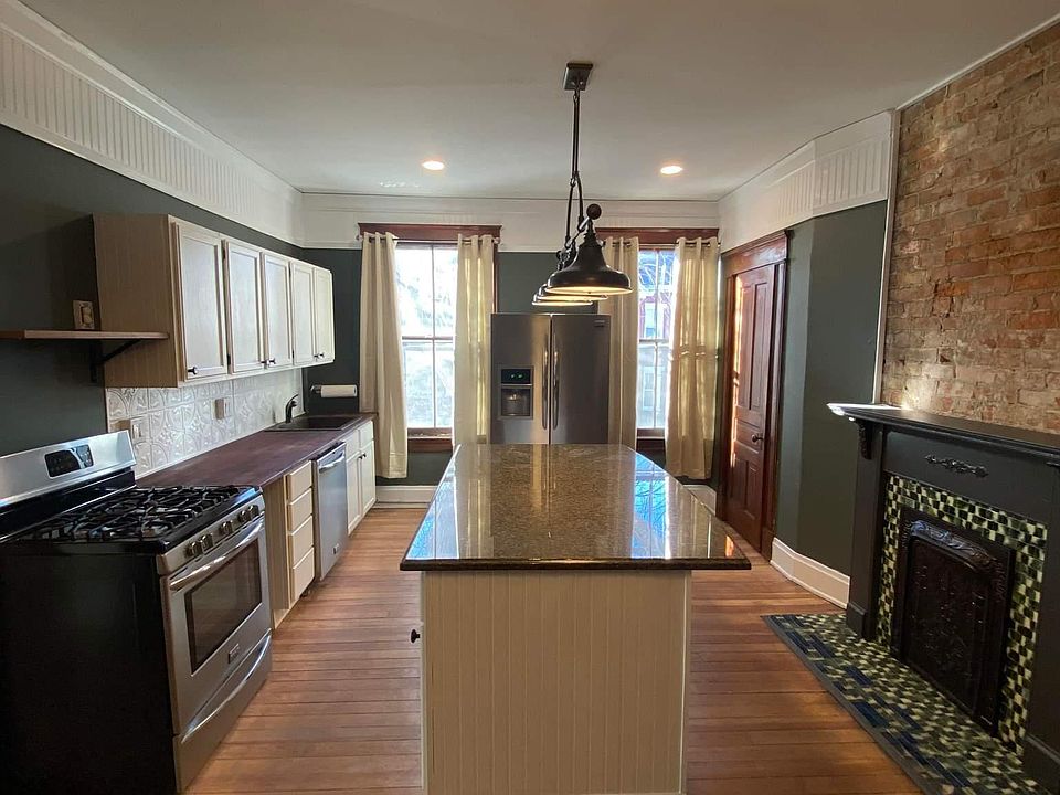 Immediate Availability Newly renovated 1 or 2 BR / 1 Bath (1,500sft) 2nd floor unit in historic Wallace Woods. Enjoy modern amenities blended with the old-world charm elements including 2 fireplaces (one in kitchen has exposed brick) with original mantels and decorative Bronze fireplace covers, 9ft ceilings, original hardwood floors, wood trim and pocket doors. All windows are decorated with vintage glass finials on black curtain rods, mini-blinds and privacy curtain panels. As you enter the building, you will notice the original features from 1894 such as mosaic foyer tiles, marble half walls and ornate wooden doors with transoms. The stairwell features original tin wainscoting and hardwood steps. This main bedroom is spacious and has plenty of natural lighting and a large closet. The bathroom includes a 4' walk-in shower, 30" vanity and a 5 shelf linen closet around the corner. You will enjoy cooking in this updated eat-in kitchen with cherry butcherblock countertop, 5 burner stainless steel gas stove and huge 6ft granite island with seating and a builtin Lazy Susan cabinet. Cleanup is easy with a dishwasher, large granite composite sink and oil rubbed bronze spray faucet. The large pantry provides extra storage. Original pocket doors dividing the front two rooms provide you with multiple layout configurations. You can create a 2nd bedroom by closing the pocket doors or leave them open for an extra large living room or a more formal dining room/living room open layout. The small room just off to the side of the front room is perfect for a home office. Step out from the office area onto your private balcony and enjoy the views of this quaint neighborhood with tree lined streets. Ample street parking available. The Wallace Woods area of Covington is close to all the attractions in Cincinnati and Northern Kentucky. Learn more about this quaint neighborhood @ WallaceWoods.org. Details about this unit: *Immediate Availability *2nd Floor Unit with Private Balcony 1 or 2 Bedrooms (depending on layout choice) Updated, eat-in kitchen with oversized granite island, butcherblock countertops and stainless steel 5-burner gas stove, refrigerator and dishwasher. Natural Gas Force Air Heat & Central Air Conditioning Water, Sewer and Trash included in rent. Tenant pays gas and electric. Washer/dryer available for $25/month. No cats. Dogs accepted with landlord approval only and additional fees may apply. Monthly Rent: $1,550 Deposit: $1,000 Sorry, we do not accept any housing vouchers or participate in any housing assistance programs. Landlord pays water, sewer and trash removal. Tenant pays for gas and electric. Cable/Internet wired.