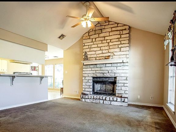 Beautiful 3/2 with garage in Mission Oaks subdivision in the desirable Mission Valley ISD. Floor to ceiling woodburning rock fireplace, large windows throughout, covered front porch and shaded rear patio. Aerobic septic, good well. New roof after Harvey and new AC July 2023. .8 newly fenced acres with two storage buildings. One building is @ 35x12 with window AC, storage loft close to full length of building almost doubling available space, insulated, partially finished with numerous plug ins, suitable for 4th bedroom/workshop. Second building is @ 20x10 with concrete floor, large storage shelf, suitable for she shed/ tool shed. Long driveway for extra parking. Deer proof plants in flower beds. Letter of credit requested for tour. We have experience with FSBO and can easily guide you thru the process.