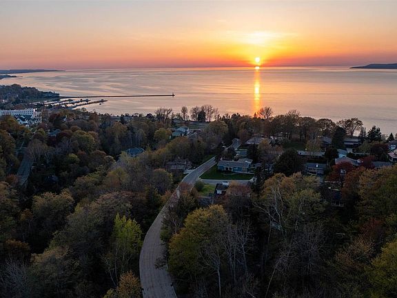 Rare mid-century offering within walking distance to Petoskey's Gaslight District. Known as "Pill Hill" to the locals, this enclave of just 20 homes is perched on a high bluff, faces the sunsets over Lake Michigan on one side, and is a short walk to the idyllic Winter Sports Park and Bay View's nature trails on the opposite side. This is a premier location for resort or year-round living and 201 Sunset occupies an oversized lot that is light and bright from all angles. Built in the 1950's, this elegant floor plan offers over 1600 square feet of main floor living with 3 bedrooms, 2 bathrooms, hard wood flooring, vaulted ceilings, walls of windows, wood burning stove, fireplace, open concept living/kitchen/dining and all the unique architectural features this period is known for. In the lower level you will find two large rooms that could be bedrooms or kid's playrooms/hobby areas, an additional bathroom, fully functioning sauna, great little workshop, and tons of easy storage space. The interior and exterior of this home has been well cared for featuring new windows, a new roof in 2019, new A/C unit, plus updated flooring and paint. Outside boasts a new irrigation system (including the flower beds), mature plantings, driveway rock wall, potting shed, an oversized two car garage, and old growth hedges offering the privacy and space of a modern subdivision home, but with the convenience of living in-town close to schools, the hospital, town, and the Little Traverse Wheelway. A unique home and property, in an ideal location on the sunset side of Little Traverse Bay. This home is easy to see and available for immediate occupancy. Call today!