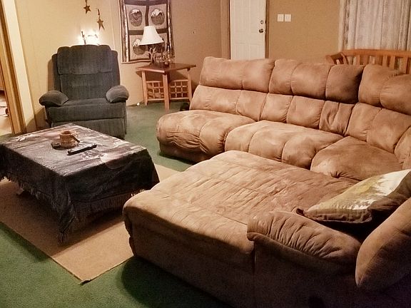 28×76 double wide with a large living room and an additonal room which may be used for another dining area, family room, or etc. The kitchen includes a dining area, pantry, and appliances. The master bedroom has a walk-in closet and a full bath with a seperate shower and tub. Three spacious bedrooms are on the opposite end from the master bedroom, along with another full bath and laundry room. The heating and cooling unit was replaced in May of this year.