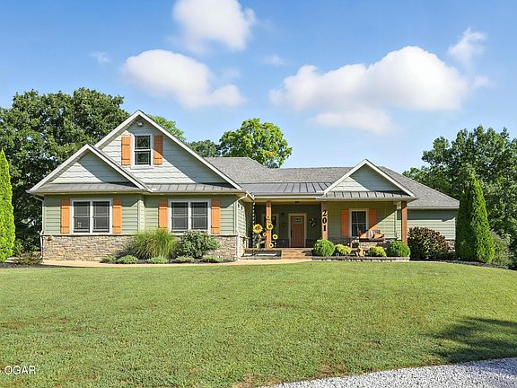 Discover your own private retreat on 32 wooded acres in a serene setting of the highly sought out Briarbrook Sub Division in Carl Junction. This impressive 4,200 sq ft (approximate) residence features 3 bedrooms and 3 full bathrooms that offers expansive living space and unparalleled natural beauty. Step inside to large, open living area framed by large windows that flood the home with light and present sweeping views of the woods and creek below. One highlight of the home is the four season room — an inviting space that overlooks the gentle creek, the mature trees, and abundance of nature. This beautifully designed modern home was designed for comfort and flexibility with two living areas, 2 kitchens, 3 garage spaces perfect for vehicles, toys, workshop, or storage all while sitting on 32 partially wooded and partially cleared acres to explore, wander or simply relax. Enjoy the trail, mature timber and creek frontage that provide both recreation and peace. Imagine morning coffee in the four-season room with the view of the creek and walk right out your door to gather around the fire pit after a long day. This home is a rare combination of privacy and luxury.