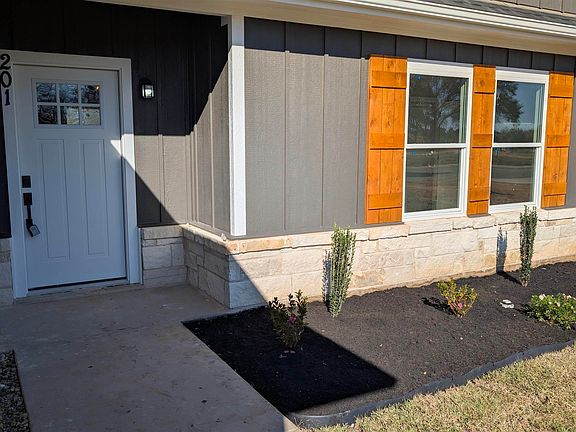 Imagine your life unfolding in this inviting new home! Nestled on a desirable corner lot within a freshly established and neighborly subdivision, this property offers the ideal foundation for a vibrant lifestyle. Picture morning strolls through the community and the ease of connecting with new friends. The home itself presents a striking first impression with its attractive blend of wood and brick – a testament to quality construction and lasting style. Wake up to pleasant views framed by charming shutters and a delightful flower box, adding a touch of personality to your daily life and boosting your pride of ownership. Say goodbye to lawn care hassles! The convenient built-in sprinkler system ensures your outdoor spaces stay effortlessly green and welcoming, freeing up your weekends. Step inside and be greeted by a spacious and flowing open-concept living area where the kitchen and dining spaces connect seamlessly. Envision hosting memorable gatherings and creating cherished family moments in this versatile heart of the home. The kitchen isn't just functional; it's designed to be the hub of your home, offering plenty of room to unleash your culinary creativity and keep everything organized. Retreat to your private master suite, thoughtfully positioned for ultimate tranquility. It's your personal haven to unwind and recharge after a busy day. Plus, enjoy the practicality of a dedicated mud area – the perfect spot to keep everyday clutter neatly contained. Two additional well-sized bedrooms offer flexibility for your growing needs – whether it's accommodating family, hosting guests, or creating that much-needed home office or hobby space. A well-appointed full bathroom ensures comfort and convenience for family and visitors alike. Your outdoor living dreams await in the expansive, covered, and privately fenced backyard. Picture summer barbecues, children laughing as they play, or simply relaxing in your own secluded sanctuary. Come and envision your future here!