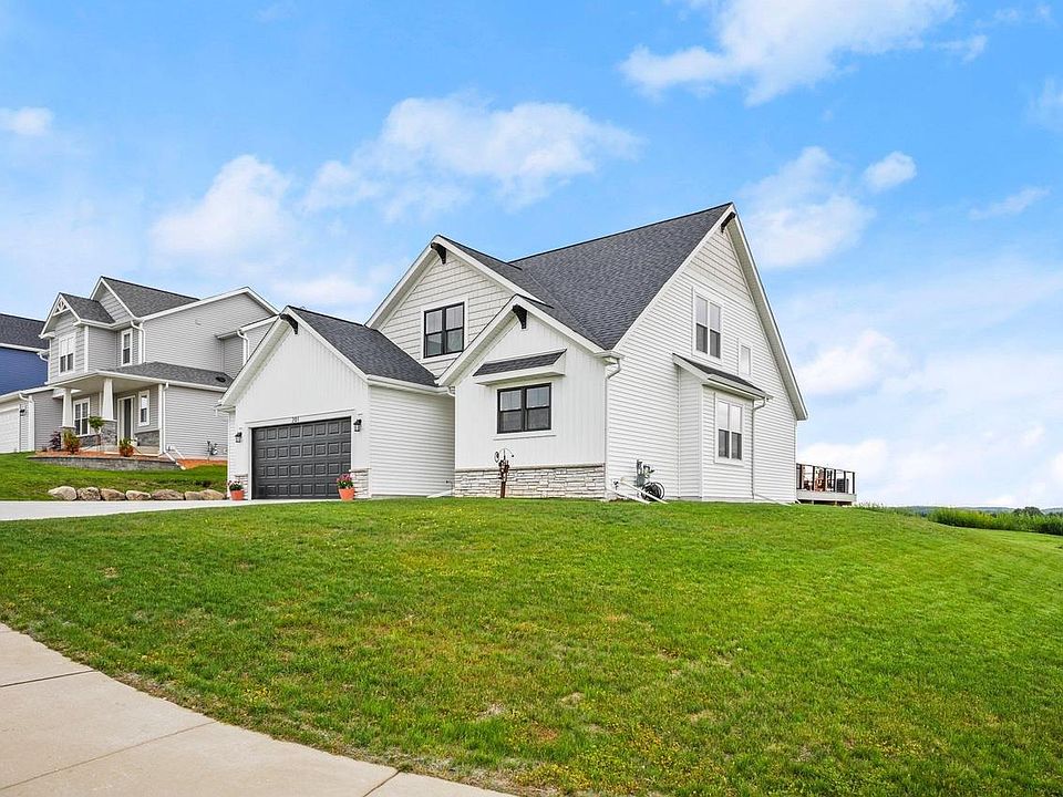 Come see this one-year new Loos built home with many upgrades and views that will blow your mind! Enjoy the southern hill landscape from your 20 x 16 composite deck with room for all! Brand new Samsung appliances, upgraded electric for hot tub and extra basement outlets, extra wide sidewalks and apron for parking, many new lighting fixtures, blinds, and ceiling fans. Large yard for pets with electric containment fence. Hurry!