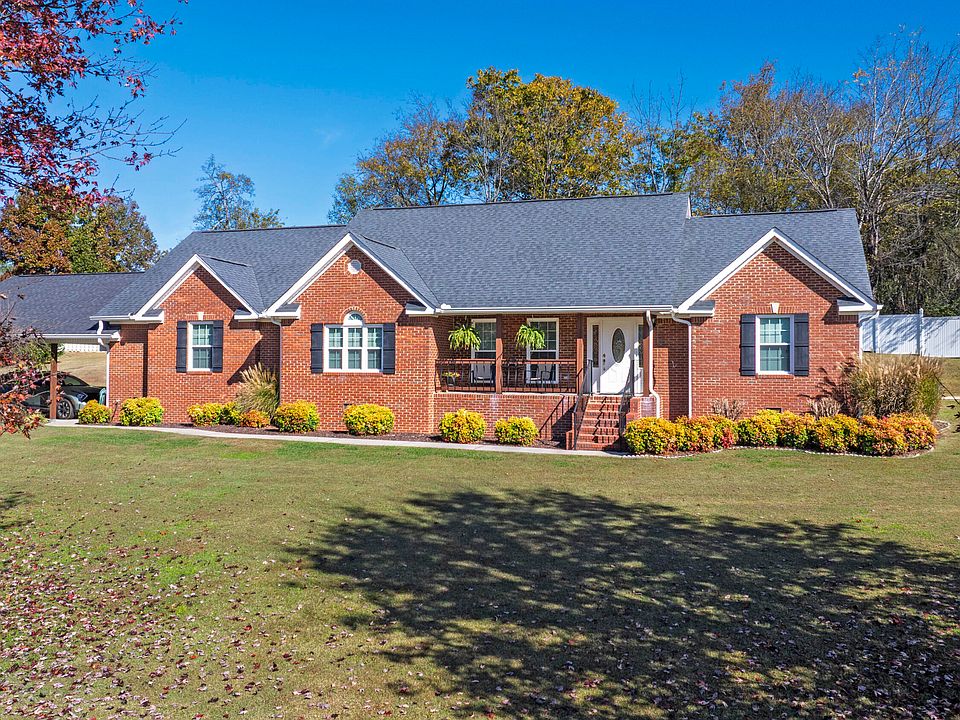 Nestled in the desirable Twin Meadows Subdivision, this beautiful brick home offers the perfect balance of elegance & comfort. Situated on a generous 1.36 acre lot, the property provides all the amenities for both relaxation and entertaining. The open floor plan with hardwood floors & a gas fireplace creates a warm and welcoming atmosphere. Large kitchen with center island, custom cabinets and plenty of workspace makes cooking enjoyable and the formal dining room offers the perfect setting for special occasions or weeknight meals. The primary bedroom suite is truly a retreat of its own, boasting a luxurious en-suite bathroom with soaker tub, walk-in shower double vanity and expansive walk-in closet. The split bedroom floor plan ensures privacy with bedroom two & three offering spacious walk-in closets and a shared Jack & Jill bathroom. For added space enjoy the large den for family game or movie night. Additional features include the in-ground pool and pool house with half bath, all enclosed by a vinyl privacy fence, 4 car attached carport, and a large storage building.