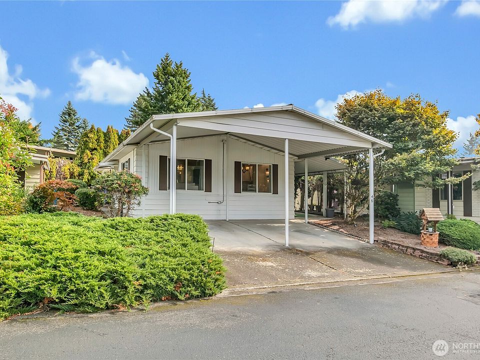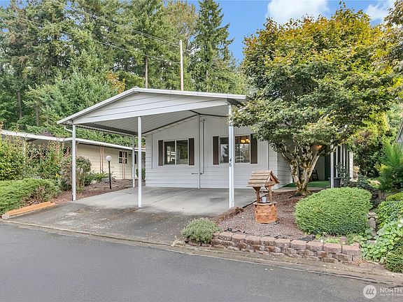 Step into refined comfort in this beautifully updated home in the prestigious Leisure Estates 55+ community in desirable Renton Highlands! The elegant kitchen showcases quartz countertops, newer stainless steel appliances & designer lighting. Spacious living area features new carpet and a modern, inviting feel throughout. The primary suite offers a private bath with a walk-in shower. A new roof adds peace of mind, while the large storage shed and expansive two-car side-by-side carport provide convenience and functionality. Enjoy resort-style living with a clubhouse featuring a party room, pool table, and exercise room. Relax in the pool, sauna, hot tub, or stay active with pickleball, tennis, golf, and a dog park. Welcome to your new HOME!
