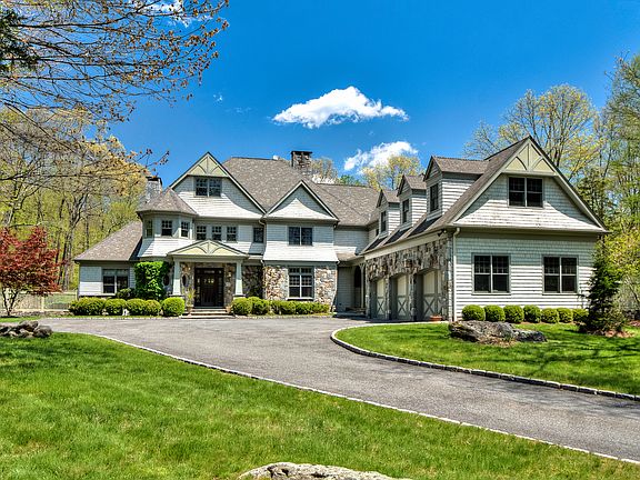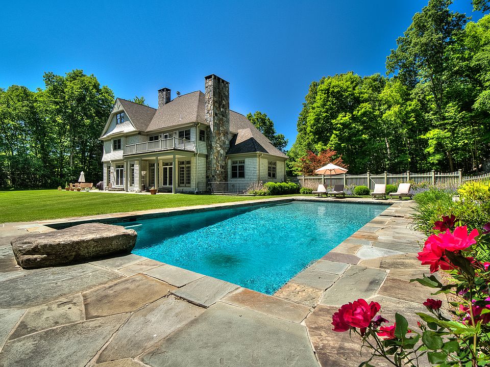 Stone and shingle country home perfectly sited on over four level acres with gorgeous gunite pool with waterfall and spa. Excellent floor plan and beautifully scaled spaces with fabulous chef's kitchen, family room with stone fireplace, mahogany office/library and gracious master suite with fireplace and balcony. French doors open from all main level rooms to an expansive stone terrace overlooking professionally landscaped property with dramatic up-lighting. Rear property abuts conservation land for complete privacy. Conveniently located minutes from town, recreation and the Inn at Pound Ridge by Jean-Georges. House over assessed at $2,007,000 - taxes to be adjusted.