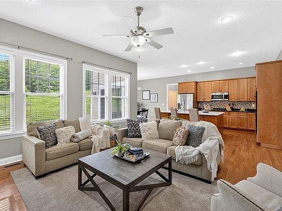 Experience exceptional resort-style living in this impeccable Brennan-built home in desirable Venango Trails! Step into the home featuring 10’ ceilings and beautiful hardwood floors, offering lots of natural light. Create timeless memories in the cozy living room with a custom fireplace. Entertain guests in the open kitchen with an oversized quartz island, SS appliances, opening to the dining area. Upstairs, large, bright bedrooms await. Master suite invites you to unwind and relax in your private retreat with a soaking tub, custom tile shower, dual vanities, and 2 walk-in closets. Finished lower level offers a massive game room—ideal as a 5th bedroom—a full bath, and a bonus private study room. Step out to your private backyard oasis with a patio screened by privacy trees, overlooking tranquil greenery offering expansive views. The yard includes a shed and sprinkler system. Enjoy community walking trails, clubhouse, swimming pool, and play area—min from fwys, shopping, and dining!