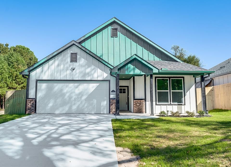 New Construction in Palestine! This beautiful 3-bedroom, 2-bath home offers a rare opportunity near shopping, dining, and local amenities. Designed with an open-concept layout, the home features tile flooring throughout the main areas and a charming built-in mock fireplace. The kitchen is equipped with Shaker-style cabinetry, granite countertops, a stylish backsplash, a large island, and brand-new appliances. Each bedroom offers cozy carpet flooring and spacious built-in closets. The primary suite includes a walk-in closet, dual vanity sinks, and a stunning walk-in shower. Step outside to a covered patio and a large, privacy-fenced yard—perfect for relaxing or entertaining. A two-car garage adds to the home's appeal.