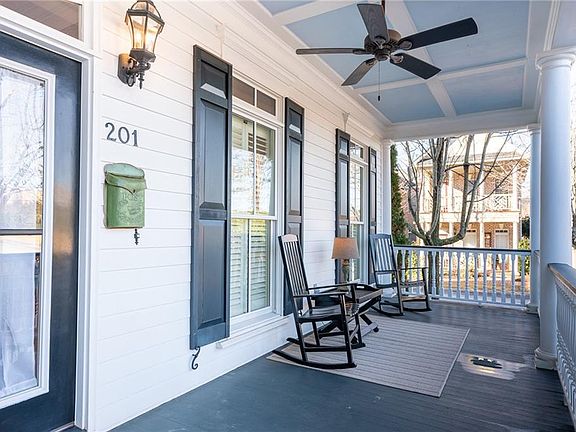 Welcome to Village Walk, Clemson's premiere Charleston style neighborhood. This two story home situated at the entrance of the community next to the clubhouse in one of the most desirable locations of the neighborhood. Sit on your oversized front porch and relax while neighbors walk by and greet you. Inside you walk into a beautiful open space with large rooms thanks to the 10ft ceilings throughout the lower level. Another thing you will notice is the entire house has plantation blinds covering every window for that extra touch. Downstairs has a large living room with fireplace, kitchen with breakfast area, dining room, laundry room, and a half bath. Upstairs is host to all three oversized bedrooms with brand new carpet and the two full baths. Wake up in your master bedroom and enjoy your own private porch for coffee and relaxing. This house has it all and is your chance to get into one of the most sought after neighborhoods in Clemson. Be sure to check out the virtual tour as well if you are not able to come see in person.