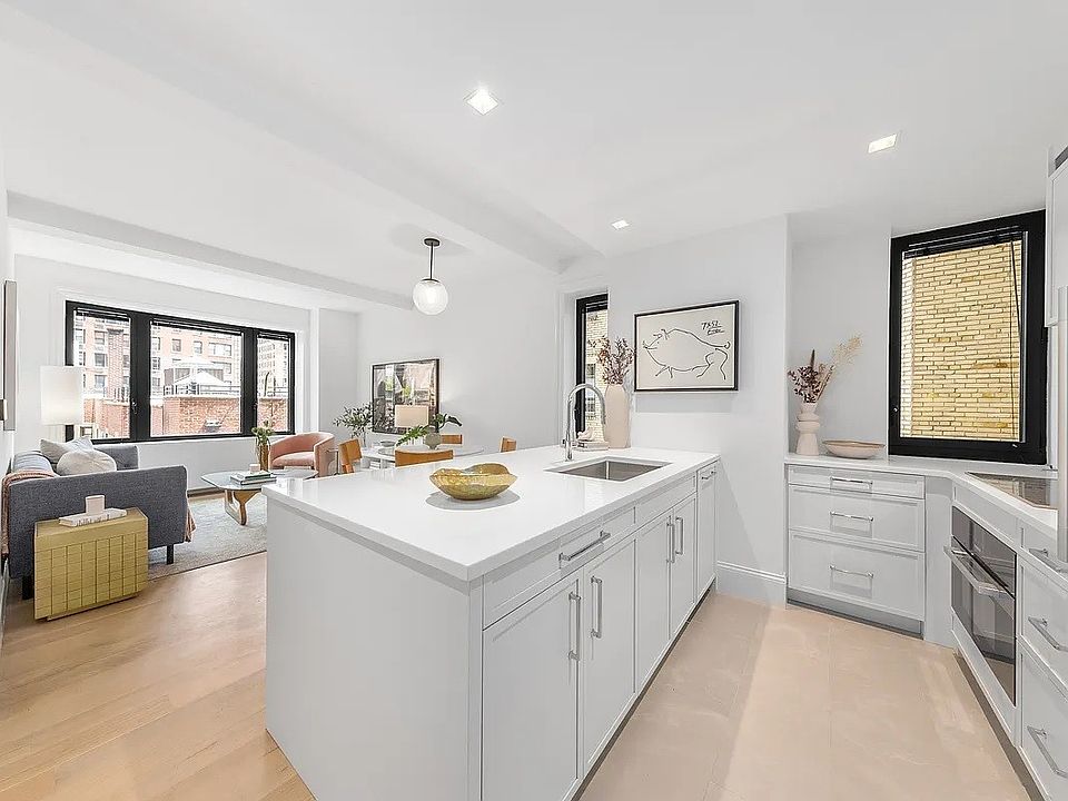 Designed by renowned architect Peter Pennoyer, the apartment features an open, sun-filled layout with generous space for both living and sleeping areas, as well as a walk-in closet. The windowed kitchen is outfitted with high-end Miele appliances, custom cabinetry, a Franke sink, and Glassos countertops with a convenient eat-in peninsula. The windowed bathroom boasts radiant heated stone floors and Waterworks fixtures. Additional highlights include solid oak floors, an in-unit washer/dryer, smart entry system, and WiFi-controlled HVAC.