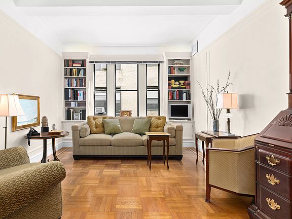 Formerly the home of Andy Rooney, author and beloved "60 Minutes" commentator, this elegant prewar 1BD/1BA beauty awaits you. Pin drop quiet, and spaciously proportioned throughout, one enters through a proper foyer that leads to a graciously proportioned living room and dining area. A large triple window bordered by custom book shelves allows for warm eastern light.