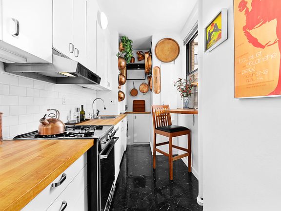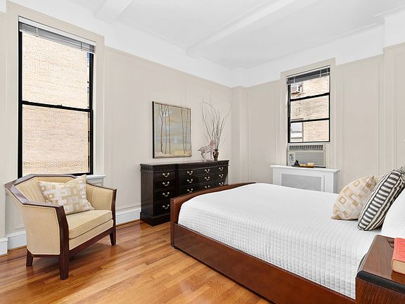 The corner bedroom boasts a custom fitted walk-in closet and a windowed bathroom beautifully maintained to preserve its quintessential prewar charm. The windowed galley kitchen has butcher block countertops, high-end appliances, generous storage, and a vented washer/dryer. Other features include stunning original oak parquet floors, tasteful prewar moldings and details throughout, 9 1/2 foot ceilings, thru-wall and windowed AC, and an additional oversized closet in the foyer.