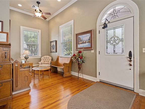 This beautiful home has a rich history in Sinton! Originally built for Bell Telephone back in 1937, it now serves as a primary residence. Still zoned commercial, it can be used as a home or a business! The original architectural details have been beautifully preserved and all updated components, hold true to the time it was built, including solid hardwood interior doors and time period paint colors. Enter into the spacious living room where natural light abounds and 12 ft ceilings with crown molding make a bold statement. Crown molding throughout. An office sits in the center and could easily be converted into a fourth bedroom. Three spacious bedrooms, one full bathroom and one half bathroom. Stunning, original hardwood floors throughout. Every aspect of this home has been cared for through the years. 2024 roof. Brick on all four exterior sides. Within walking distance of restaurants, stores and so close to all Sinton has to offer!