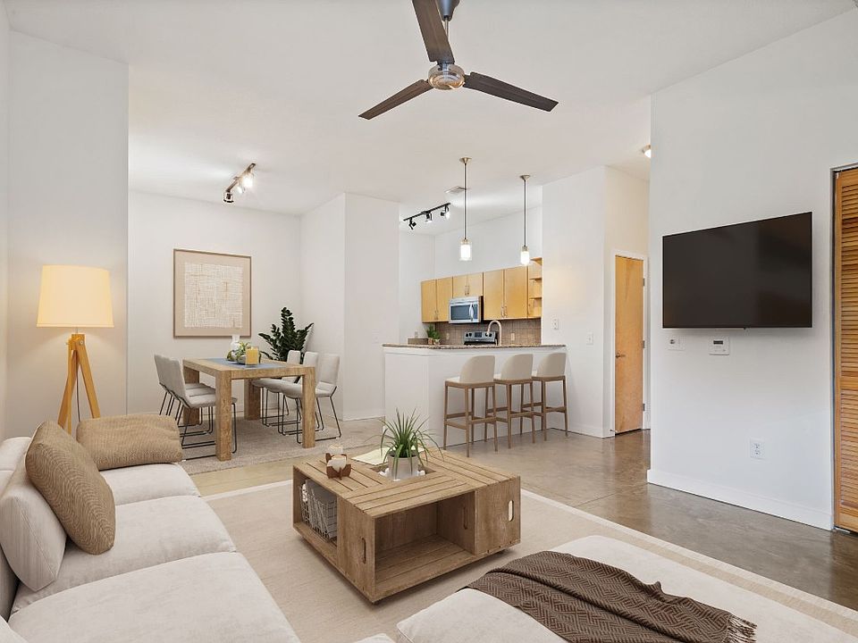 Welcome Home to this modern, cozy condominium in the heart of Fort Worth! It's located just off I-30 W and the downtown area with quick access to Sundance Square and all the best shopping, dining and entertainment the city has to offer! Featuring an open concept floor plan, sleek concrete flooring, tall ceilings, abundant natural light and industrial accents, this uniquely designed space reflects the downtown city feel from top to bottom. The kitchen has stainless steel appliances and abundant cabinet storage, with the primary bedroom boasting a walk-in closet. The bonus space off the living-dining area is perfect for a home office, hobby room or exercise area! Enjoy numerous additional amenities and the convenience of downtown living by making this condo your new home!