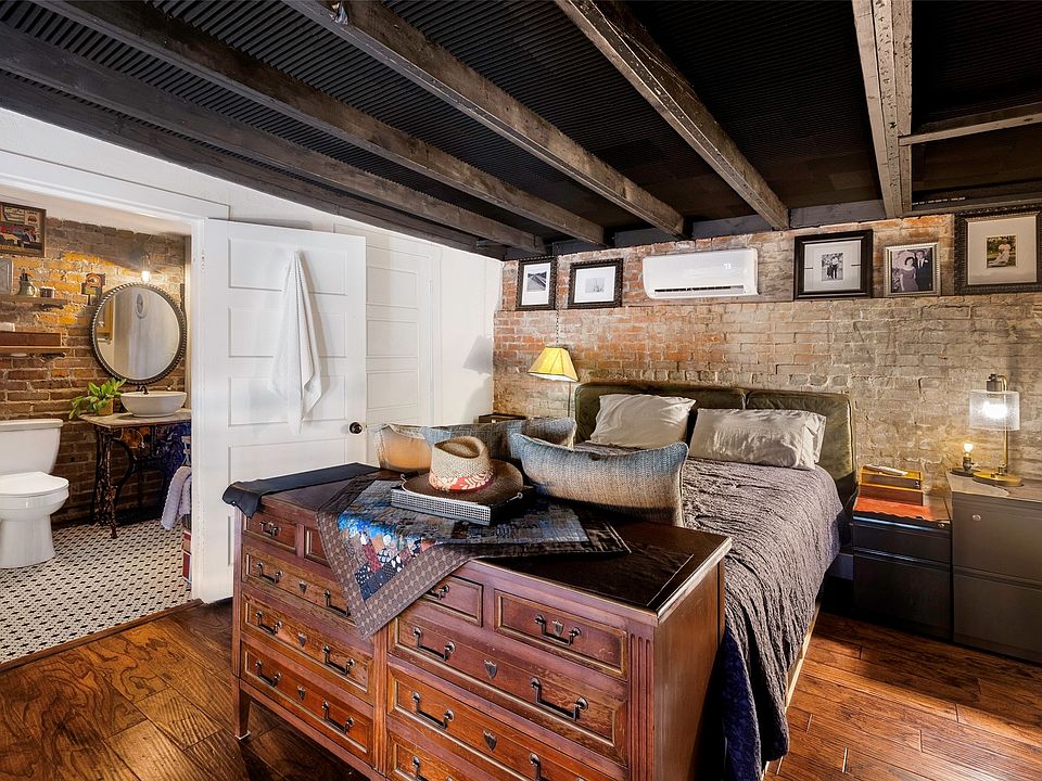 Open floorplanWood floorsLoft-style homeOriginal pressed-tin ceilingsExposed brickWalk-in closetEnsuite bath