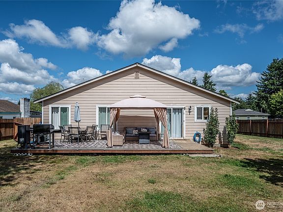 Set on almost a 1/4 acre corner lot, 15 minutes to Olympia, this 1,812 sq ft 3 bed/2 bath home pairs an open layout with smart updates. A brand-new roof and covered entry welcome you; out back, a fully fenced yard & lg deck expand everyday living. Inside, a living room with electric fireplace connects to a flexible den/playroom (4th bedroom ?). The kitchen has island seating, walk-in pantry, gas range, & stainless LG appliances. LifeProof flooring in the main living areas. The primary bedroom features an ensuite with double sinks, a soaking tub, and an oversized walk-in closet. Efficient systems include a heat pump with A/C, natural gas furnace, & gas water heater. Garage floor finished with epoxy. Move-in ready.