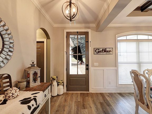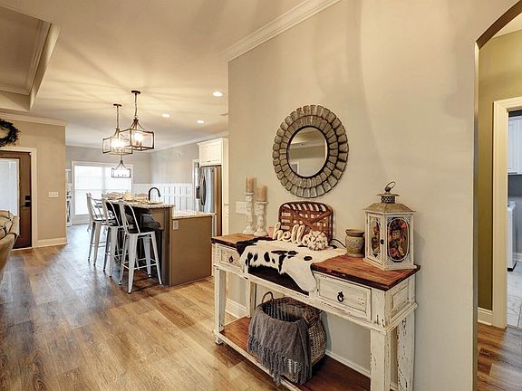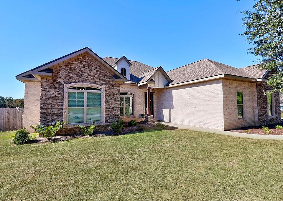 This stunning stone and brick Craftsman-style home features a desirable split bedroom floor plan with 4 spacious bedrooms and 2.5 baths. Enjoy elegant details throughout, including a formal dining room with a gorgeous coffered ceiling and a grand room with decorative beams that add warmth and character. Relax and entertain on the large screened porch, perfect for enjoying peaceful evenings outdoors. Additional features include a central vacuum system, security system, and sprinkler system for convenience and peace of mind. This home combines timeless craftsmanship with modern comfort — a true gem in the sought-after Headland community. There are 3 stock ponds, walking trail and fireplace pavilion in the neighborhood