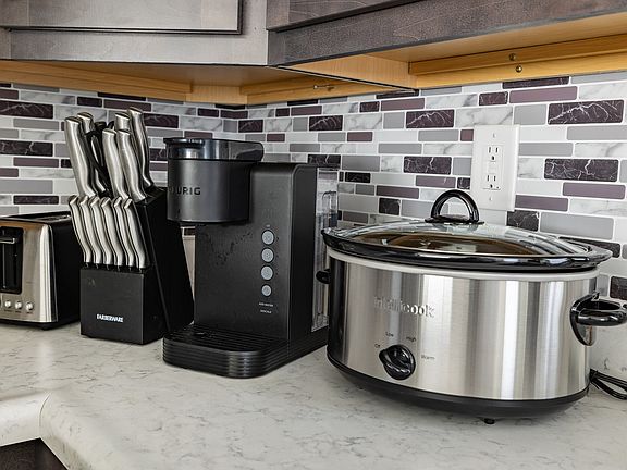 This is a two-bedroom, one-bathroom home. Both bedrooms are furnished with comfortable king-sized beds. The backyard is fully fenced and includes a gas grill, fire pit, and two Adirondack chairs. The kitchen is well-equipped with an array of pots and pans, dishes, bakeware, a crockpot, spices, a blender, and any other necessities for meal preparation. There is also a 1 car garage.