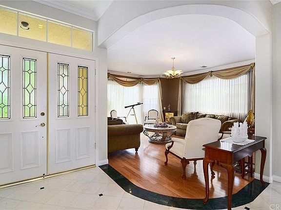 Nestled at the base of lush green foothills, awaits this special home. Queen palms stand guard to welcome you & yours into this light & bright custom abode. Unique architectural accents deliver a distinct look to the entry & living room. A tasteful blend of tile & hardwood offers a pleasing flooring experience. Spacious living room affords a romantic wrap-around balcony to gaze out to the expansive views. Large Kitchen with ample cabinetry & counter space affords generous windows to frame the beautiful sites. Enjoy Formal Dining & a spacious Family Room with fireplace. Your master suite features a walk-in & private bath with separate shower & soaking tub. Two additional bedrooms & bath plus an office complete the main level. Massive laundry/utility room with closet offers ideal options for an office, gym, studio or additional bedroom. Outside, covered dining/entertaining, lush tropical grounds & panoramic views of Valley lights & majestic mountains deliver a dream come true. In addition, there is a huge exterior-access storage area & the nearby neighborhood park offers lighted basketball & tennis. Don't miss!