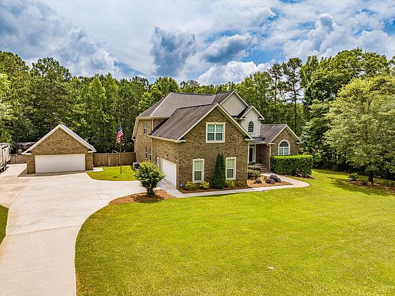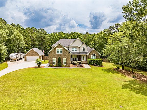 Summer fun is ready for you at this beautiful Appling home with a 20 x 40 saltwater pool on nearly 3 acres and less than 5 minutes to the lake! Beautifully manicured corner lot with wooded privacy is the perfect setting for this wonderful home boasting over 3,300 sq. ft., 5 bedrooms, 3.5 baths, screened porch overlooking pool, 2 car attached garage and a 2-car detached garage. Rocking chair front porch opens to a 2-story foyer flowing directly into the very open dining and living area with beautiful hardwood floors. The main floor has a wonderful flow including a front room with barn door, great room with cathedral ceiling and wood burning fireplace, kitchen with double oven, electric cooktop in island, granite counters, walk-in pantry, new LVP floor and eat-in area opening to fabulous screened in back porch. Completing the main floor is the primary bedroom with private bath featuring a whirlpool tub, separate shower, double vanity and large walk-in closet, a guest bedroom with private bath, the laundry room with utility sink and a half bath. Upstairs features 3 guest bedrooms, built-in office area at landing, a full bath, catwalk overlooking great room and walk-in floored attic storage. The multi-layered screen porch with new tile floor is perfect for entertaining and relaxing while enjoying the pool view. Let's not forget the oversized double attached garage and the detached double garage with a 30 amp RV plug and additional attic storage. Paved driveway with additional parking pad, fenced back yard and wooded area extending behind pool fence truly make this home everything dreams are made of. All of this within 15 minutes to Riverwood, shopping and the interstate!