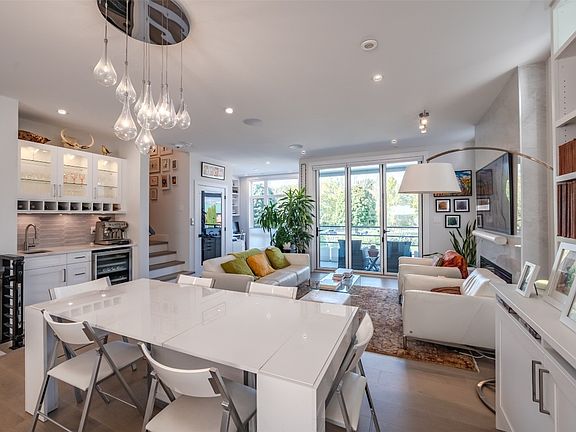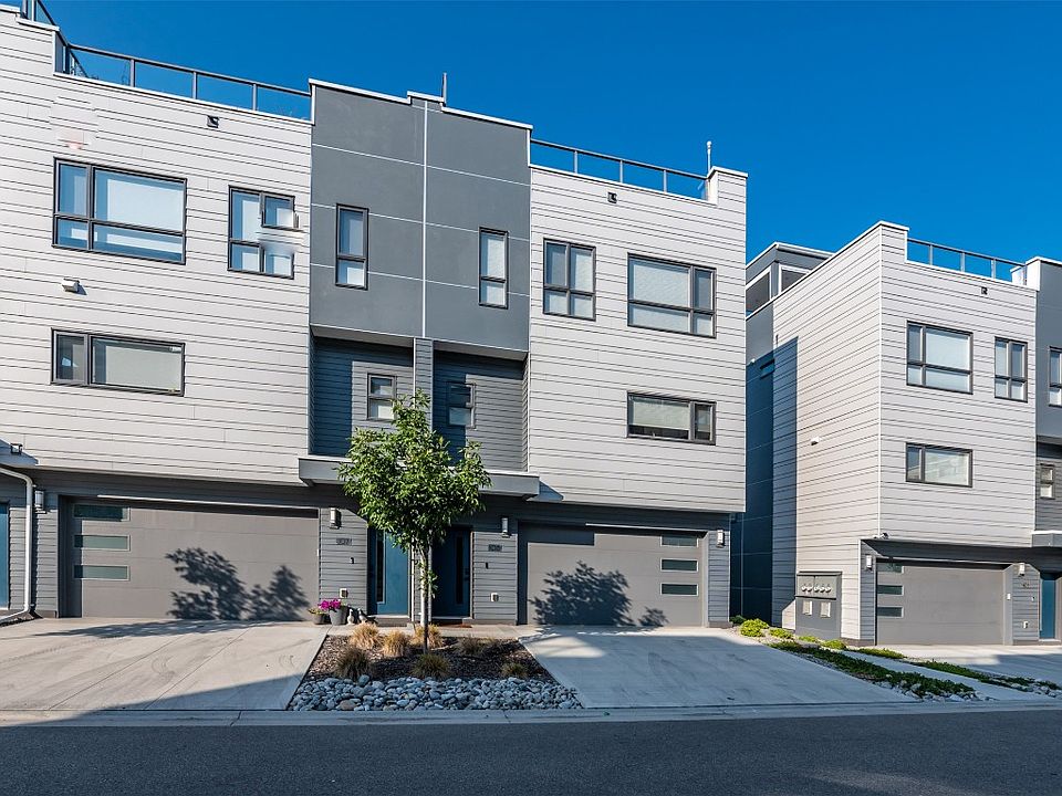 Welcome to Riverside, luxury townhouse living located in Penticton’s vibrant north end. This is the ultimate in low maintenance living. Built in 2021 this Quality built (end unit) townhouse offers beautiful contemporary finishes. In addition to the two balconies a huge rooftop patio provides fantastic outdoor space with complete outdoor Bar-B Que and private Hot Tub. Access is made easy throughout this home by way of an elevator. Just to name a few of the quality upgrades completed in this beautiful home are a complete Sonos sound system built-in throughout.Voice activated light switches on main floor. Remote controlled and programmable window blinds. Built-in bar and wine fridge. Built-in bookshelf and cupboards. Soft closing pull out drawers in kitchen island. Retractable privacy blinds over hot tub. Built-in outdoor kitchen with barbecue sink on roof deck. Electrical car charger in garage. Extra storage units installed and so much more. Ideal positioning within the complex makes for lovely sight-lines of the park along the Penticton channel and downtown. Okanagan Lake is just a short stroll from your doorstep, as is shopping, Penticton golf course, dining and downtown. The gorgeous open concept kitchen boasts high end Miele appliances, and the open concept main floor features accordion glass doors to the balcony and floor to ceiling windows. Generous sized doulble garage. Pets are allowed and no age restrictions. Strata fees are a low $348. per month.