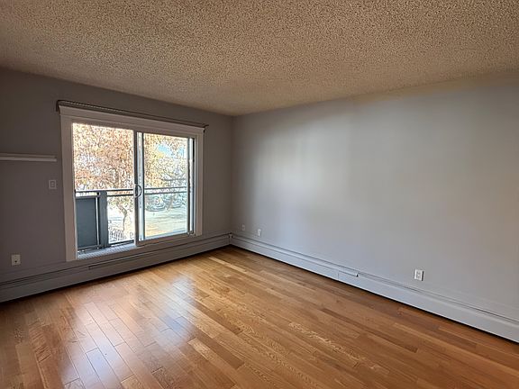 The unit features a bright living area with lots of natural light, gleaming hardwood flooring, a practical kitchen with full-size appliances, and in-suite laundry. The open living area leads to a private balcony, which offers enough space for seating ideal for quiet summer days. The spacious bedroom accommodates a double or queen bed and a dresser. The 4-piece bathroom has a large soaker tub to relax in. Water and natural gas are included in the rent, along with one assigned outdoor parking stall.