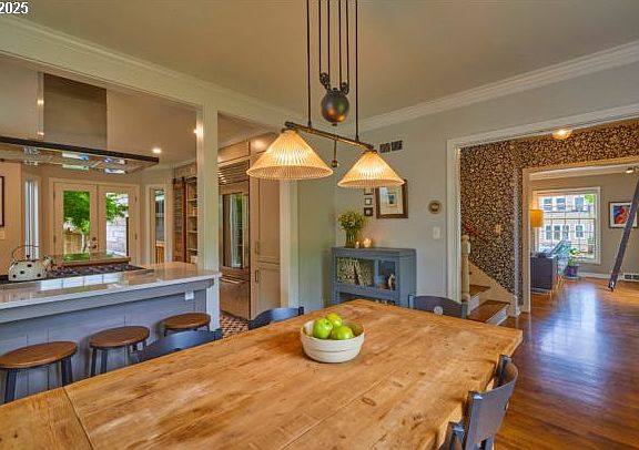 Don't miss this rare opportunity! This remarkable home, treasured by the same family for over 30 years, is now ready for its new chapter.This lovely residence is the perfect blend of vintage charm and modern comfort, thoughtfully remodeled by Rainbow Valley Construction helping to blend the decade of the 1930s with the decade of today.The heart of the home, always the kitchen, boasts an open chef’s kitchen featuring all stainless-steel appliances, a gas cooktop, a spacious farmhouse sink, custom tile floors, and French doors that open to quiet brick patio and impeccably landscaped backyard. The gracious living room is anchored by custom-built bookshelves with library ladders, creating a cozy retreat for book lovers. Rich hardwood floors and an abundance of windows bathe the space in natural light, while French doors extend the living area to a custom-designed covered deck. With a built-in gas fireplace, this outdoor haven is designed for year-round living and entertaining. A large dining patio completes the setting, enhanced by garage walls sided with reclaimed wood salvaged from the family’s barn—a warm and authentic detail that adds a classic character.The bathrooms are sweet and bright, open and light boasting a wonderful clawfoot bathtub for special vintage charm. On the lower level, you’ll find a spacious family room, full bathroom, laundry area, and generous storage. A fully intact and functional laundry chute makes laundry day both practical and delightfully nostalgic.A truly special home with timeless character, modern amenities, and spaces designed for connection and joy. Call your Realtor today for more information!