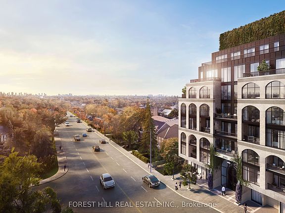 Welcome to The Rhodes - a truly unique, boutique residence with only 25 suites, offering exceptional privacy and quiet luxury. Ideally located where Forest Hill, Cedarvale, and the Upper Village meet, this is a rare opportunity to own in a building that blends tranquility with urban sophistication. Perched above Forest Hill and Cedarvale, this suite offers sweeping, tree-lined vistas reminiscent of Central Park. From every window, you're surrounded by canopy of mature greenery and historic rooftops - a serene, forest-like setting in the heart of the city. From the moment you enter, a sense of calm and privacy sets in - an extraordinary urban refuge that must be seen to be fully appreciated. This brand new 2-bedroom, 3-bathroom suite features direct elevator access into a private rotunda and foyer leading into a grand, open layout. Currently unfinished and fully customizable, buyers can personalize their space or opt for the premium standard finish package, included in the purchase price and completed within 90 days of a firm sale. Standard finishes include 7" wide plank engineered hardwood, quartz countertops, Gaggenau appliances, 7" baseboards, and 8' solid core doors. Suite highlights include 10' flat ceilings, architectural windows, in-floor heating in the primary ensuite, and a well-considered split bedroom plan. The east facing balcony is shared by both bedrooms, while the west-facing terrace off the living area offers partial coverage, a gas BBQ rough-in, and a beautifully landscaped planter with a large tree and seasonal florals. Enjoy refined living and white glove concierge service provided by the Forest Hill Group.