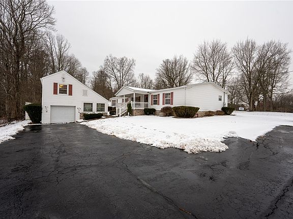 Spacious 3bed, 2.5bath No Step Ranch home nestled on a serene countryside lot. This property boasts a formal living area that leads into the dining room w/ hardwood laminate flooring. Pass through the French doors into the family room accented by a stone fireplace and bright picture windows. A welcoming open-concept kitchen w/ a cozy eat-in dining area and barstool island. Mudroom and laundry area has access to outside and a convenient powder room. Primary suite complete w/ a generously sized walk-in closet. Two guest bedrooms with a modern bath & skylight. Detached garage features a heated sunroom and a finished upstairs area, providing versatile space for your creative endeavors or hobbies. Additionally, the expansive 1+ acre property w/ an oversize shed in the back. The large, paved driveway can comfortably accommodate several vehicles, ensuring ample parking space for hosting guests. Near the Bushy Run Battlefield and located in Penn TWP School District. New Furnace - 12/11/23