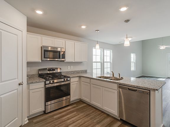 Now selling the Evans floorplan, a fantastic two-story home! Featuring an open layout with a high vaulted ceiling in the family room! The spacious primary bedroom is located on the main level and has a private bathroom and walk-in closet. The primary suite bath will feature dual sinks and a separate garden tub and shower. Enjoy get-togethers in a great kitchen with a granite countertop, stainless gas range, and microwave, and upgraded white cabinets. Throughout the main areas downstairs you'll have luxury vinyl plank flooring. The backyard living space features a covered patio and storage shed! Upstairs, there are three secondary bedrooms and a hall bathroom.