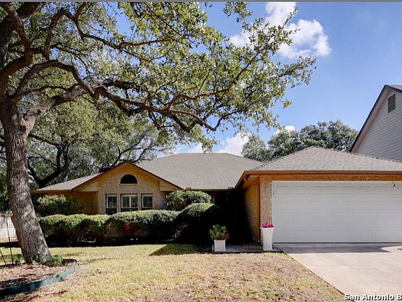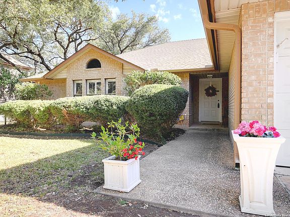 Beautiful single story home featuring 2,535 sq. ft. 3 bedrooms, 2 bathrooms, and a 2-car garage in a highly desirable and sought after Huntington Pl neighborhood. This inviting floor plan offers a spacious living area with beautiful wood flooring, a cozy fireplace, plantation shutters throughout, and an open layout ideal for everyday living and entertaining. The kitchen includes solid surface countertops, ample cabinet space, and a seamless flow into the dining and living areas. The large primary suite provides a peaceful retreat with an en-suite bathroom offering a separate shower and garden tub, plus a generous walk-in closet. Enjoy year round comfort in the enclosed patio, perfect for relaxing or hosting guests. Step outside to a private backyard with mature trees, a large extended patio, rain gutters and irrigation system for added convenience and low maintenance. Prime location just minutes from major highways I-10, Loop 1604, and Loop 410, as well as the Medical Center, USAA, shopping, dining, and more. This well-maintained home combines year round style, and convenience ready for you to enjoy!
