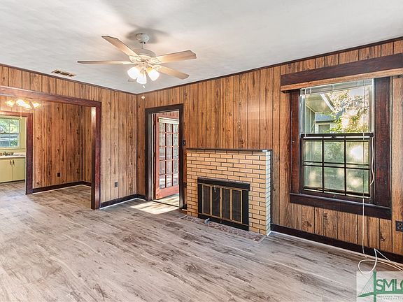 This adorable bungalow is what you’ve been waiting for! NO FLOOD INS NEEDED. Enter the charming old front door, to find a home well-loved & maintained for generations. Easy to care for aluminum siding. Block-style build garage w/ workshop space & a boat port. The laminate floor installed & updated bath-3 yrs. The gas fireplace can be made usable. This floor plan is great! The primary bdrm has access to the cozy screen room. The laundry, located off the kitchen. Enjoy the peaceful quiet sipping iced tea on the swing, under the covered patio. Embrace your inner gardener. Put this greenhouse back to work to sculpt your outdoor haven waiting for your vision. Sitting high and dry in a no-flood zone, 2 mins to Daffin/Savannah Bananas, 5 mins to hospitals, 10 mins to Forsyth, and 15 mins to Tybee, making this a perfect location. A few personal touches~see the transformation to the perfectly located sanctuary you’ve been hunting for! Tenant moved out, pics were done while tenant was in place.