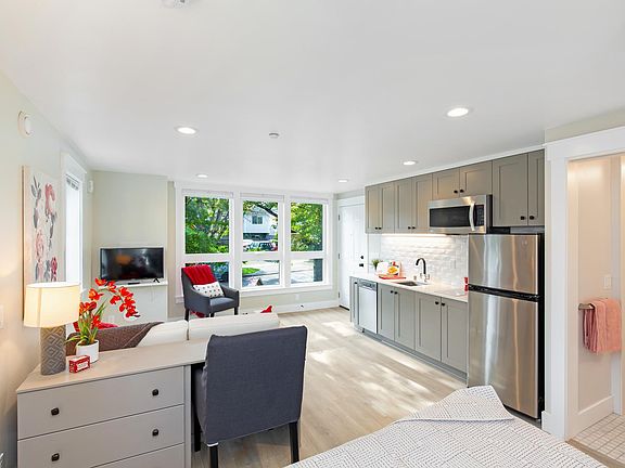 Please contact us directly for property website, 3-D Tour, personalized Virtual Tour or more information. Amazing opportunity to live in a brand-new luxury apartment home on a quiet tree-lined Capitol Hill cul-de-sac. Nestled among the trees, this collection of custom-built homes is quiet, and Covid-safe with separate private outdoor entrances and a beautiful patio, perfect for small socially-distant outdoor gatherings. Expansive windows on three sides with sunny southern exposure and territorial views make you feel as if living in your own urban tree house. Each home has thoughtfully built-in custom phone charging nooks and storage, convertible furniture options, stainless steel appliances, CONVECTION OVEN FOR BAKING and microwave, high tech stove top, A/C ports, and in-unit laundry. Efficient Built-Green design and layout enables you to live BIG in a small sustainable footprint. Unique design eliminated all shared walls with neighbors for complete privacy and solitude. Bask in the luxury of the oversized showers lined with custom art tile. State-of-the-art lighting design give you ultimate control over nighttime ambiance. Partially furnished options allow you the ease of bringing only your art, computer and clothing to put your own mark on the space without needing to haul furniture or purchase new pieces to fit the home. We've taken the hassle out of the moving process, allowing you to spend more time doing what you love! Each home comes with a new white leather couch, dresser, desk, smart ROKU TV with high-speed fiber optic WIFI for streaming and work! With fiber (unlike cable), uploading speeds are as just as fast as downloading. Two comfortable chairs offer extra seating and a new high-quality mattress for ultimate comfort and a blissful night's sleep. Gourmet kitchens, with quartz countertops, tile, dishwashers and stainless steel appliances make cooking a dream. Hardwood floors make cleaning a breeze. Pet friendly, flexible lease terms, no smoking.
