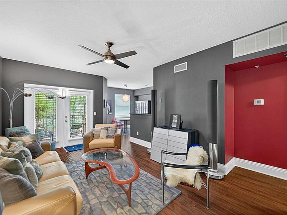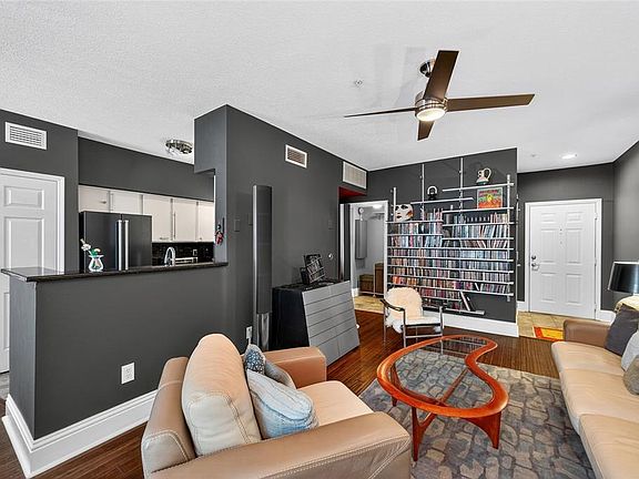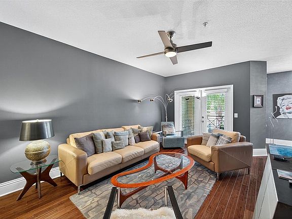 Live the sophisticated city lifestyle in this impeccably upgraded residence where modern design meets timeless elegance. Step into an expansive open layout that flows effortlessly from a chic living area to an inviting dining space, enhanced by 9-foot ceilings and a seamless blend of hardwood and porcelain tile floors. The completely remodeled kitchen is a culinary showpiece, showcasing sleek granite countertops, stainless steel appliances, and a spacious closet pantry — the perfect fusion of style and function. The open living space transitions gracefully into a generously sized bedroom with a custom walk-in closet and a spa-inspired bathroom featuring a soaking tub/shower combination and dual vanities. Every day living is effortless with a discreet laundry closet equipped with high-end washer and dryer. The meticulous owner upgraded the a/c system in 2022. Step through elegant French doors to a private balcony overlooking a tranquil courtyard framed by mature trees and lush, manicured landscaping — your personal oasis in the heart of the city. The community has security covered with its many key fob-operated gates and a gated parking garage. The Quarter at Ybor is home to 2 resort-style pools, a hot tub, a fitness center, a clubhouse, a billiard room, a clubhouse theatre, and serene courtyards. Walking outside and you're minutes from Centro Ybor, the original Columbia Restaurant, the Saturday Market at Centennial Park, countless dining choices, rich nightlife, culture, and more. You can immerse yourself in all that vibrant, historic Ybor has to offer, and you can take the TECO Line Streetcar, which connects Ybor directly to all the activity in Channelside and Downtown Tampa.