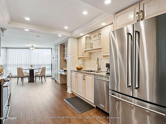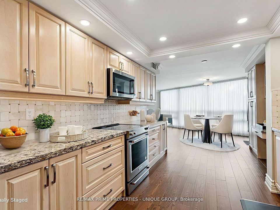 Professionally renovated throughout with top-tier finishes, this spacious Tridel-built suite offers 1,525 sq. ft. of thoughtfully designed living. The open-concept layout features a split-bedroom floor plan, ensuring privacy for guests or family. The versatile second bedroom easily adapts to a home office, media room, or reading retreat. Enjoy morning coffee on your private balcony with a southeast view. Carpet-free and move-in ready, with ensuite laundry and only six units per floor for added quiet and comfort. Explore the 3D tour and photo gallery to see both partially furnished and space-planned views. This well-managed community includes a gatehouse for peace of mind and a vibrant schedule of social activities. Convenient access to Hwy 401/427 and shopping. __**EXTRAS** Huge locker room 7x10.5x 8.5h 1st locker on P2 next to elevator. 2 tandem parking spots next to elevator. 24-hr security. Maint. fee include all utilities, internet and TV. New windows installed for noise reduction and increased insulation. Luxury Resort-style amenities. __**INDOOR** pool & hot tub, sauna, gym, aerobics/yoga room, squash court, ping-pong room, golf-swing room, library, party/ event room, billiard room (2 tables). __**OUTDOOR** 5 BBQs & Patio, massive swimming pool. 3 Tennis/Pickle Ball courts, lush gardens.