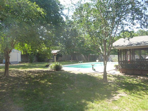 This brick home is convenient to town and it has wonderful amenities. The yard is well-landscaped and boasts a fully-fenced back yard, an inground pool, grilling deck, 2 storage buildings and screened porch with built-in bench seating. The interior has laminate wood floors in all but one guest bedroom. There is a den with a gas fireplace that is completely open to the kitchen and has access to the screened porch and pool. There is a formal dining room/living room. The two guest bedrooms have good closet space and access to the large guest bathroom on the hall. The master bedroom has a private bathroom with a nice-sized vanity area and a tiled shower. Owners have replaced windows, air conditioner and roof during ownership. Sellers are offering a refrigerator allowance. This one is ready for a wonderful new owner so take a look today.