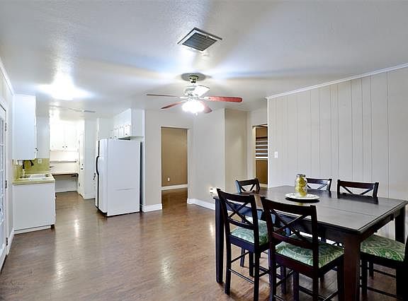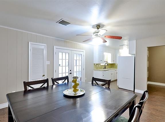 Charm and details make this a stand out home. Both bathrooms are updated with beautiful tile and and tasteful detailing. Barn door on master closet, generous sized bedrooms, luxury vinyl flooring, a large dining area off the kitchen and a huge covered back patio with two ceiling fans and extra uncovered concrete space for entertaining make this home special. There is even a great area for a dog run. Kitchen has a large walk in pantry. Refrigerator stays. All blinds stay, even the unique custom blinds in living room! Ring video doorbell stays! There is no carpet in this home. Non smoking owner, very clean home. Buyer to verify flood, schools & sqft.
