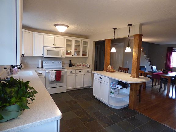 Biggest family room you will likely find and it's open to the dining area and kitchen. Beautiful hardwood floors and the bright kitchen with it's center island and corian countertops add to the charm in this home. Upstairs bedroom has it's own bath. Basement bedrooms lack egress windows but there is another family room down there. New gas tankless water heater. Gas heat is available with discounts through Avista. Storage and work shop area off carport. Huge back yard will accommodate a large shop.