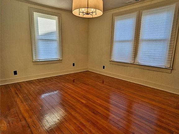 Welcome Home..where architectural details blend perfectly into spacious interiors. Stunning hardwood floors. From the palm tree in the front yard to the gracious oak tree in the fenced-in backyard. Side porch with the upgraded porch fan and shaded dog run! As you enter, you're greeted by an open living room - dining room combination. The original fireplace will keep everyone cozy in the winter. Through the dining room is the kitchen, with a new dishwasher, washing machine, and dryer! 2 spacious bedrooms share a 4 piece bathroom with fresh haunt blue paint. Upstairs, the fully renovated primary suite has been taken down to the studs within the last year. The renovation included new spray foam insulation, new windows, new flooring, an updated bathroom, added closet space in the bedroom, and more! The 3 piece bathroom has ample storage, new modern flooring, updated fixtures, new tile, and a beautiful skylight! Come add your personal touches to make this your HOME SWEET HOME !
