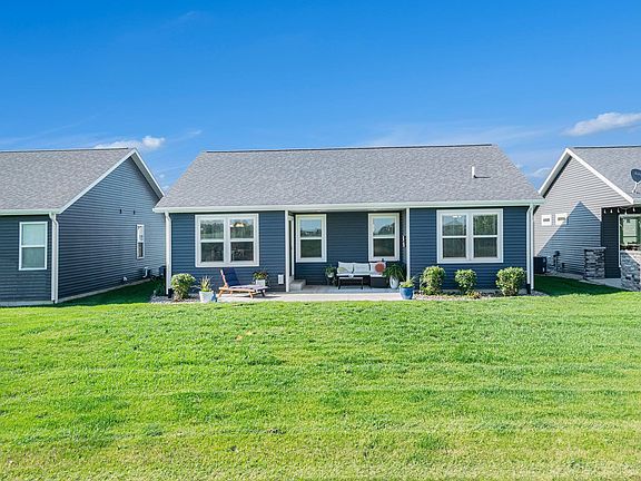 Welcome to this beautifully maintained, six-year-old open-concept villa offering comfort, style, and room to grow. This thoughtfully designed home features two spacious bedrooms and two full bathrooms, all on the main level for convenient, single-level living. The open floor plan creates a seamless flow between the kitchen, dining, and living areas—ideal for both everyday living and entertaining. Step outside to the back patio, where you’ll find an electrical hookup ready for a hot tub—perfect for relaxing evenings. The attached garage is a standout feature, with a durable epoxy-coated floor that adds both style and function. Downstairs, the unfinished basement offers endless potential. With an egress window and plumbing already in place for a third bathroom, it’s ready to be transformed into additional living space, whether you envision a guest suite, home gym, or media room. HOA fees cover weekly mowing and snow removal. This move-in-ready villa combines modern convenience with future flexibility—Welcome HOME!