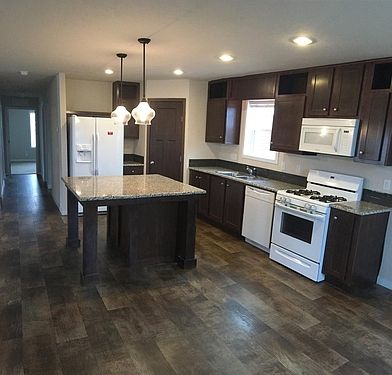 Don't miss the chance to make this like new double wide home yours!! This gorgeous newer home features 3 bedrooms, 2 full bathrooms, with a large living room, LARGE kitchen w/ island, and granite counters, laundry room/mud room and walk in closets!! Call today for more details!