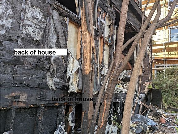 Duplex partially destroyed by fire. Major fixer or tear down and rebuild.
