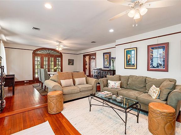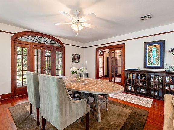 This charming Raised Basement Craftsman home is ideally situated in the heart of Broadmoor, conveniently located near parks, schools, shopping, and dining. Boasting historical architecture throughout, the home features three spacious bedrooms and two full bathrooms. Upon entry, a lovely screened-in front porch leads into a home adorned with original millwork, dark wood accents, and original pine and oak wood floors. The bright and airy living and dining spaces, anchored by the gas fireplace, offer abundant natural light through original windows. French doors off the dining room lead to an inviting parlor or office space. The generous kitchen exudes warmth with its built-in rich wood cabinets, breakfast nook, double oven, tiled countertops, and backsplash. The expansive primary bedroom, located at the rear of the home, features a walk-in closet and ensuite bathroom. Downstairs, you will find an additional 600 square foot space with laundry, utility sink, and refrigerator that would make a perfect guest suite, workspace or second den. To top it off, there is a 1,277 SF 2 bedroom/1 bathroom apartment on the ground level that showcases an open-concept design, seamlessly integrating the living, dining, and full kitchen. It features closet space and private laundry. Rent the apartment, use the additional space for guests, or convert the home back into a 5 bedroom/3 bathroom masterpiece! Outside, the lush backyard offers a serene retreat with a large deck and a pergola, perfect for outdoor entertaining, off-street parking for multiple cars, and large enough to add an in-ground pool. With fresh interior and exterior paint, this home is move-in ready with plenty of space to make your dreams a reality!