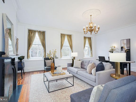 Unbelievable opportunity to enjoy over 2400 square feet of graciously renovated living space with ONE CAR PARKING in the heart of Rittenhouse Square! Perfectly situated on your favorite block just steps from the square, this stunning bi-level space is the top two floors of a historic 1870's brownstone mansion. It seamlessly blends the grandeur of the past with today's comforts and conveniences. The light filled living room of this special property spans an incredible 27 feet overlooking the treetops of Spruce St from the stately windows. The eat-in kitchen beautifully melds old and new with plaster moldings and a beautiful fireplace with modern touches like Jenn Air appliances, breakfast bar, great cabinet space, and granite counters. The south facing primary suite features a large marble bathroom with radiant floors and plentiful closet space. Convenient laundry room on this level. Upstairs are two spacious bedrooms, a beautiful bathroom, and a bonus space perfect for watching TV, working or studying from home. If you desire more private outdoor space beyond the park, there is an opportunity to create a roof deck off of this floor. Pet friendly building with low condo fees. Don't miss your chance to live in the heart of it all in timeless elegance!