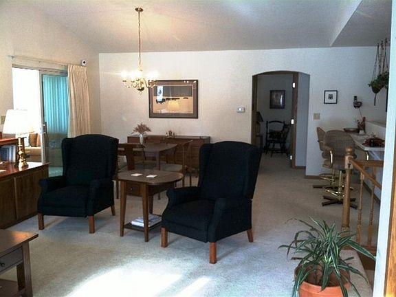 Well kept 2 bedroom condo that is located on a tucked-away cul-de-sac street, yet close to shopping and restaurants. The kitchen offers a breakfast bar and is open to an additional dining area. Just off of the dining area is a delightful sun room that has a quaint gas heating stove and ample space for friends to gather. The lower level is unfinished but has large garden level windows and is a walk-out. This is perfect space for you to design as you choose. Fees are paid in May and October. $340.00 twice a year. They cover lawn care, snow removal, and gutter cleaning. The unit is owner insured and not covered under an association.