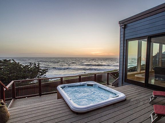 Enter the front door from the courtyard and be amazed by the startling expanses of crashing ocean opening before you. This new custom 3 bedroom 4 1/2 bath home of approximately 4400 square feet brings the magnificent ocean into every room. In addition there is a separate attached guest quarters with its own living room, bedroom and bath with private patio. Each bedroom is a suite.