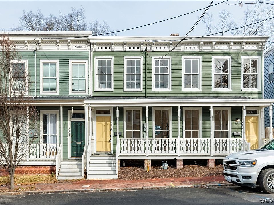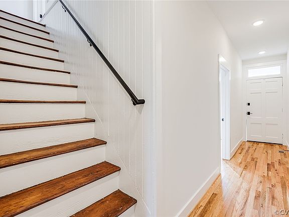 Absolutely stunning renovation located in RVA’s Union Hill neighborhood and just a short walk to Jefferson Park, Metzger and many other area favorites! Featuring a city skyline view and offering 3 bedrooms, 2.5 baths, and 1,550+ SF of living space, there’s a lot to love! After being taken down to the studs, there’s all new mechanicals, new roof, brick adjoining wall for soundproofing, conditioned crawl space, 2 zone HVAC and more. 9ft ceilings make this home extra spacious with a first floor bedroom/office boasting floor-to-ceiling windows and recessed lighting. The living room opens nicely to a beautiful kitchen with a big island, quartz counter tops, tile backsplash, soft close doors and drawers and SS appliances. A nicely sized backyard includes a concrete patio, privacy fence and off-street parking. Upstairs you’ll find the primary suite overlooking the city skyline with a large walk-in closet and en-suite with quartz counters, sconce lighting, walk-in shower with frameless glass door and tile to the ceiling! A second bedroom with hardwood floors and double closet rounds out this gorgeous home!